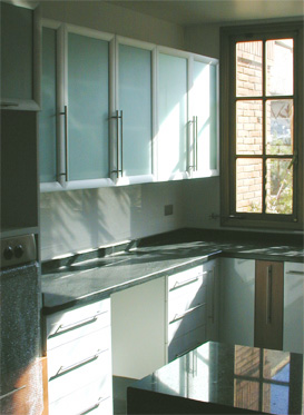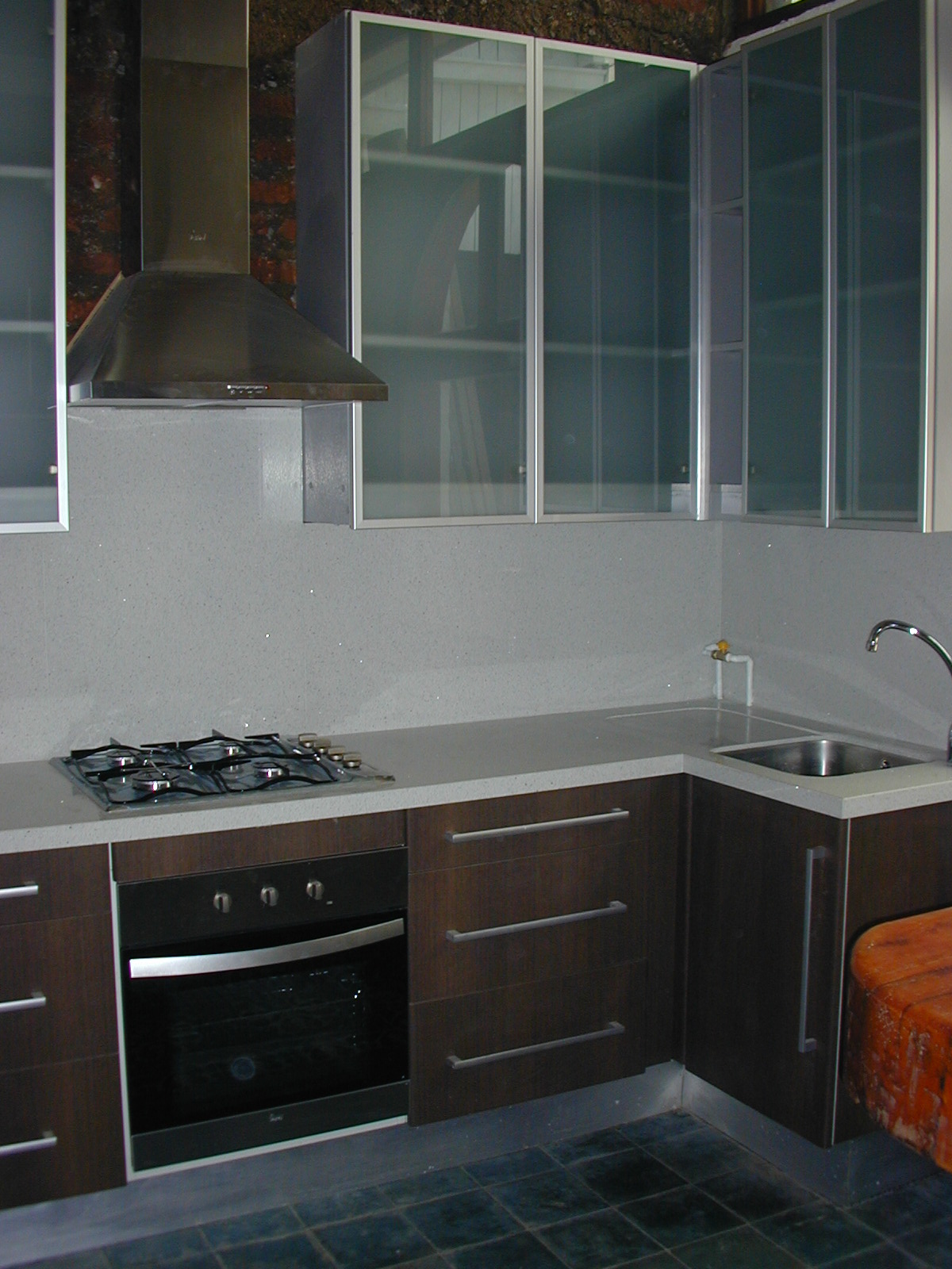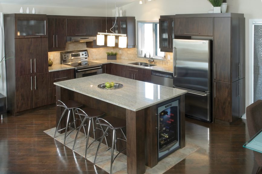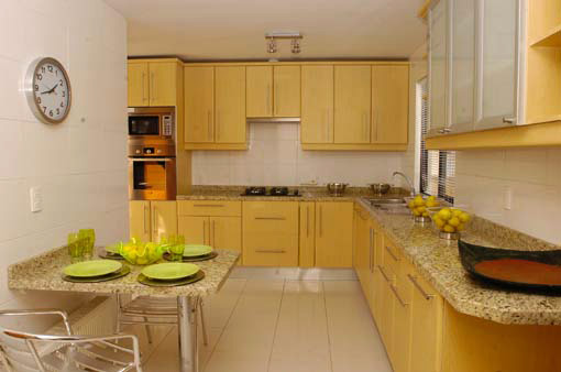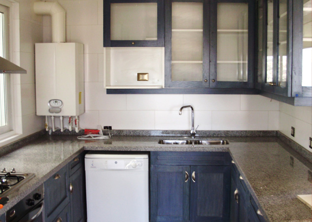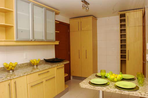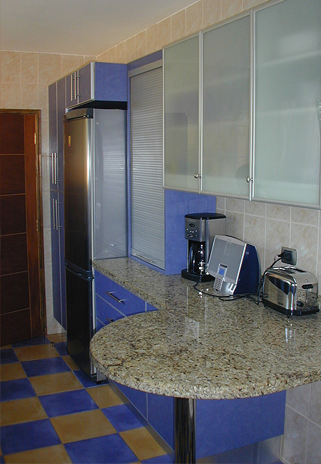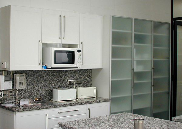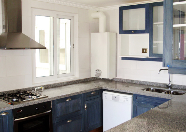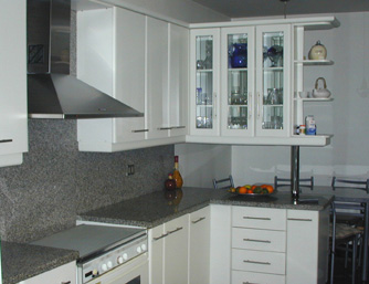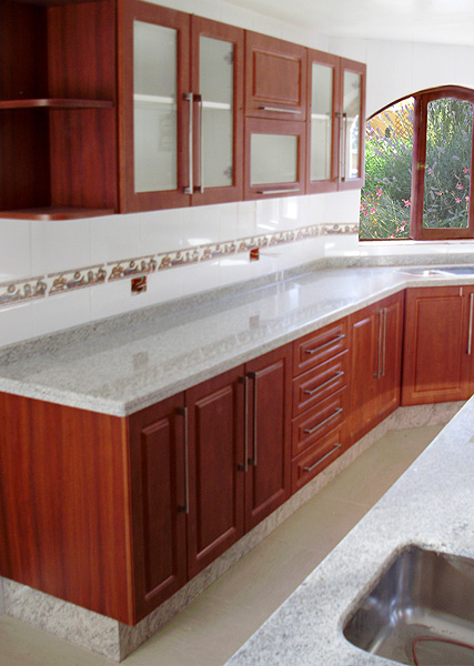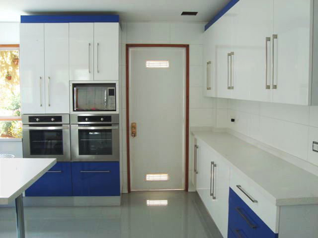 Puertas con revestimientos laminado de alta densidad. Cubiertas postformadas, de granito o Silestone.